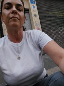 בתמונה: אני מארחת חברה למדרכה כחול-לבן תלאביבית